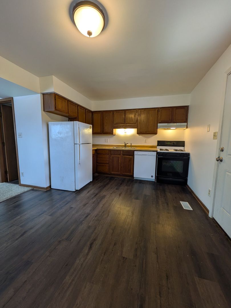 The apartment features a spacious living area, two generously sized bedrooms, and a full bathroom. The kitchen includes appliances and space for dining, making it perfect for everyday living. Residents will also enjoy the convenience of in-unit laundry and off-street parking.