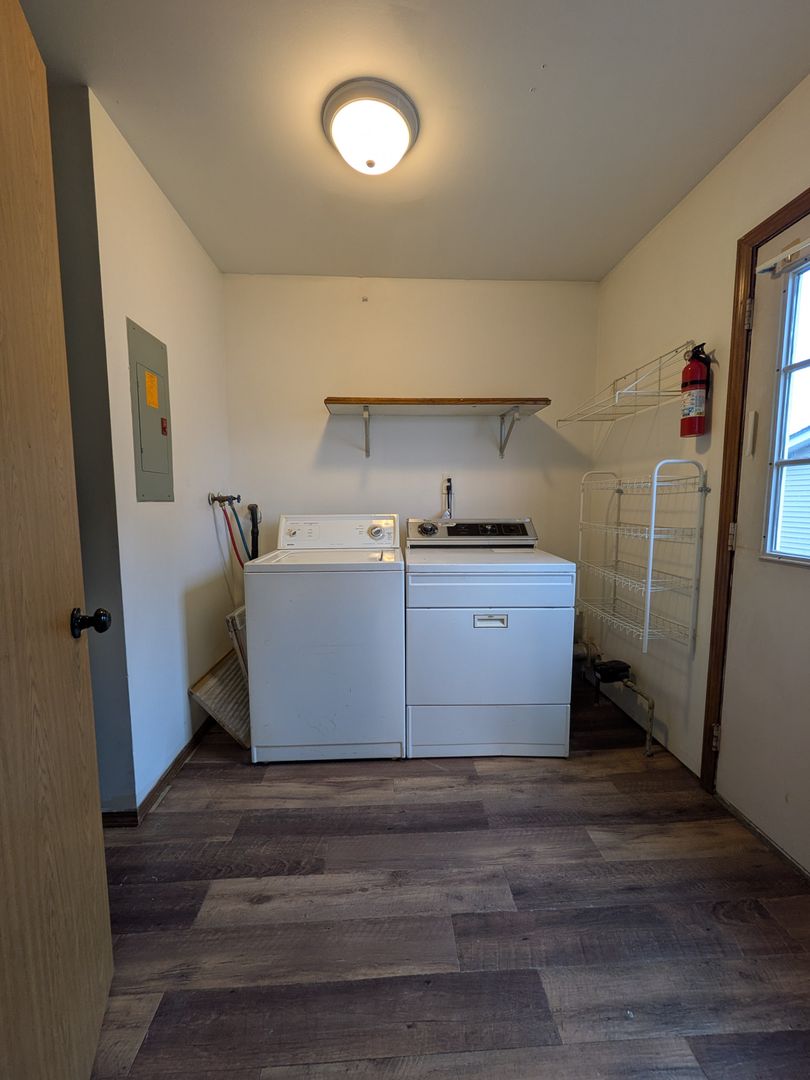 The apartment features a spacious living area, two generously sized bedrooms, and a full bathroom. The kitchen includes appliances and space for dining, making it perfect for everyday living. Residents will also enjoy the convenience of in-unit laundry and off-street parking.